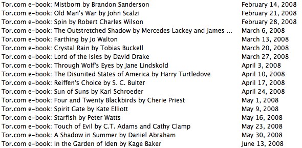 Does anybody know if it is still possible to get John Scalzi's _Old Man's War_ from Tor? I signed up too late to get it, I guess. I've got all the others (I think) except _Mistborn_ which I have in paper.
