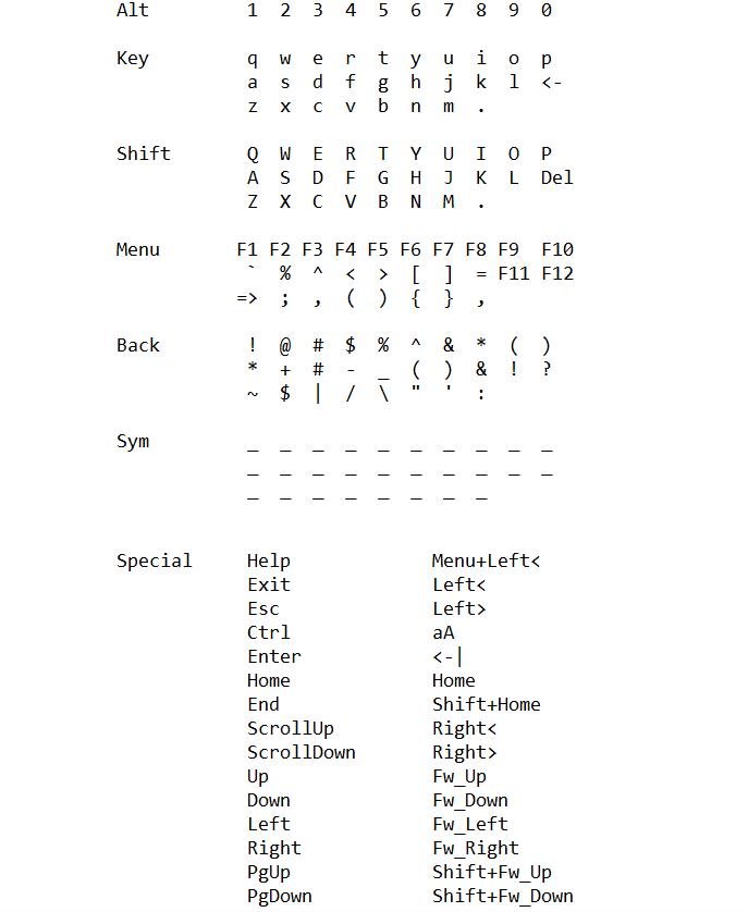 Sym+Key are currently unassigned. Scrolling up/down is not implemented.