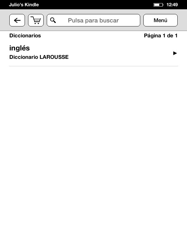 Mi Touch is in "Spanish", and if i go to "International->Dictionaries" i only see "inglés" (english). I can change the default dictionary, but when a click a word I get a message saying there isn't a dictionary for book's language... (see attached images)