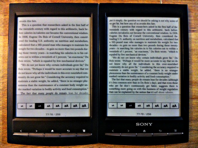 Device: Kobo Aura HD, Kindle 4, Sony PRS-T1 (formerly PRS-500 & 505), iPad Air