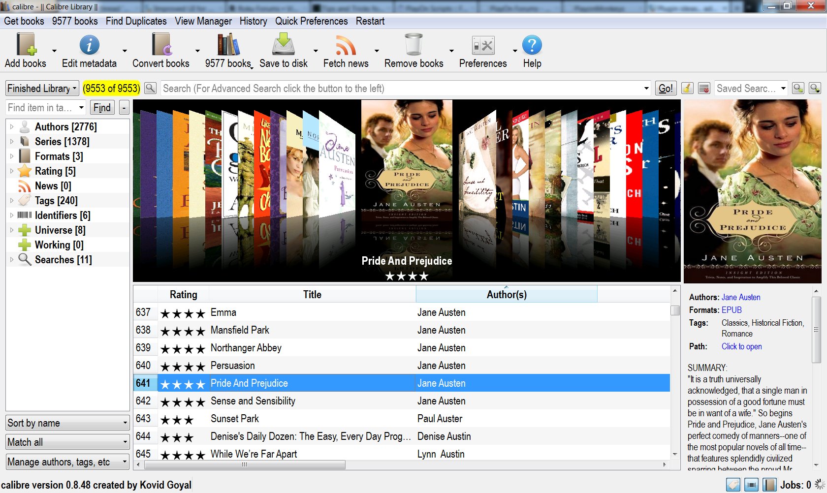 Being able to see my ebooks as books on virtual shelves is the very feature I miss in Calibre a lot. A virtual shelves view, available in quite many ebook managment programs (e.g. http://ebook-lib.com/, http://alfaebooks.com/products/alfae...nager/overview) would be a great additon in my opinion.