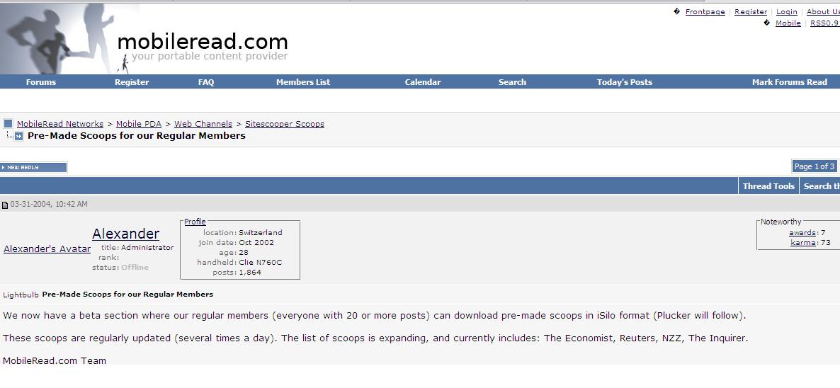 ![]() http://sitescooper.taint.org/scoops.html https://www.mobileread.com/forums/forumdisplay.php?f=47 |
