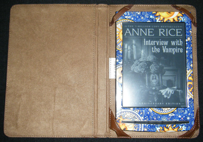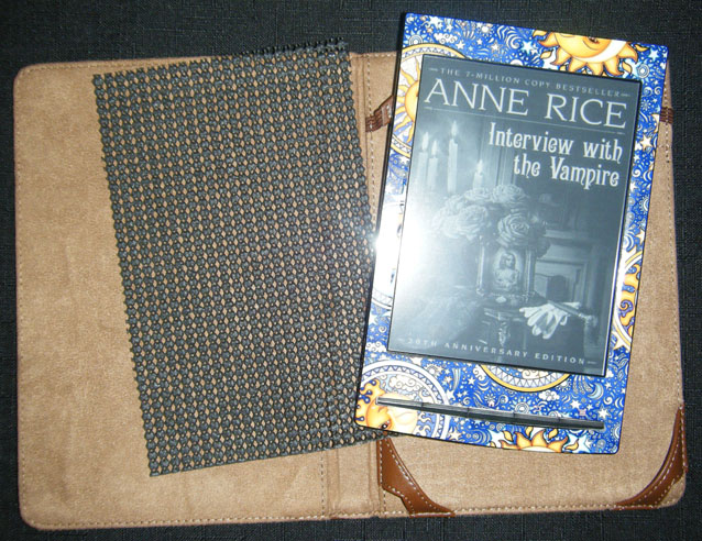 I expected a floppy, canvas cover. Instead, it's a hard cover all around, mostly brown leather (or fake leather?), with the front having the sewn-on/glued-on fabric New Yorker cover. The inside is a really nice tan microsuede. Classy looking, all around. The light is quite bright on the highest setting, better than I expected for only having one AAA. The best position for storage has the light hanging down the right side when not in use, not a big deal, but not protected in any way by the cover. Only teensie downside is that it's now harder to access the K3's on/off switch Best looking e-reader case I have. Best price for a light/case combo. Thanks Boston (OP) and GeckoFriend (bumped the thread for late-comers like me to see). |