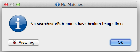 And on my book only, the one I sent you, there are no broken images found. Also, sorry about the confusion on the log I sent. It was the check run against my whole library. Just not being very careful. |