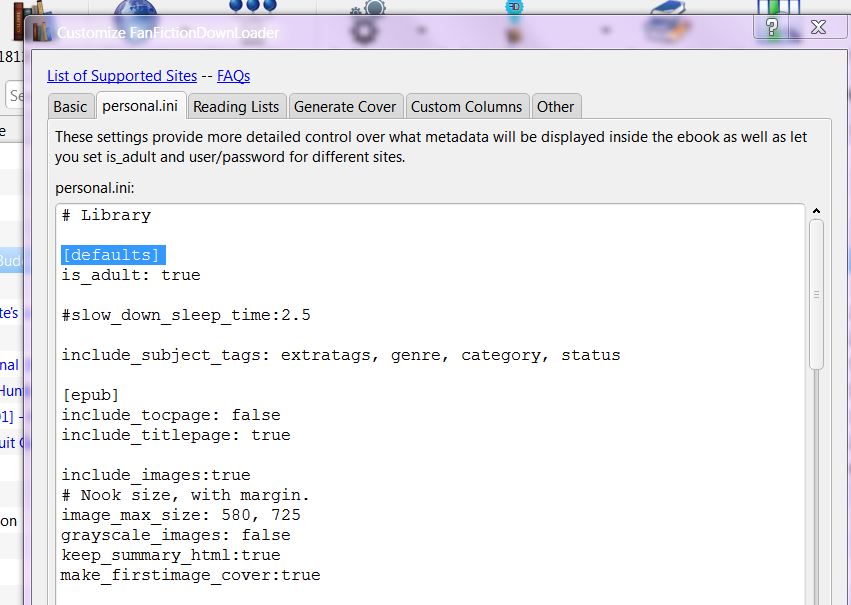 One other thing: I was adding a couple of stories from ik-eternal.net and for every story it prompted username & password, and then the confirm adult prompt. And yes, I put in my username & password in the personal.ini. Is it still supposed to prompt for every story?