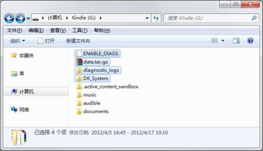 1. Copy Folders: DK_System, diagnostic_logs and files: ENABLE_DIAGS data.tar.gz into Kindle