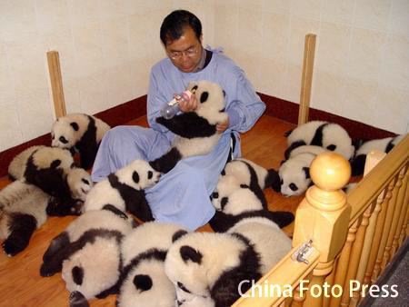 In fact, I believe the site doing this research was affected by the recent earthquake. One adult panda died, but most were fine and were moved to ... Beijing? (where-ever the Olympics are being held). They were kinda desired to move for the publicity factor during the Olympics, but the move became mandatory after the earthquake. One of those moved pandas just had a pair of twin babies. There's a news video of the leetle thing actually dropping from her underside, to the floor. And then some shots of the newborns too. Can't at the moment find those recent news tidbits. But: