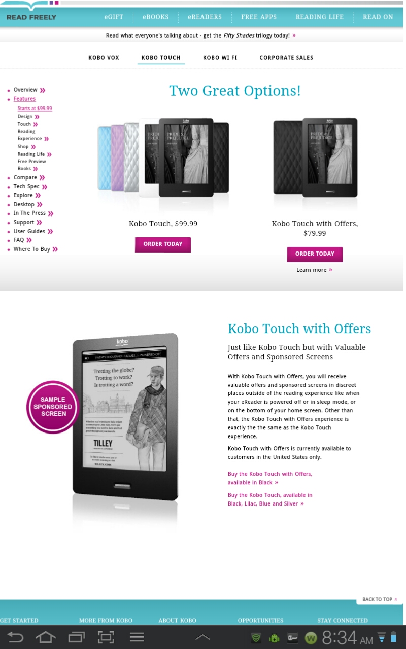 Hmm... The page you linked to is blank... Have they removed the Kobo with offers from sale? It's not on the ereader sales page either. Or is it because I'm in Canada and its only on the US site?