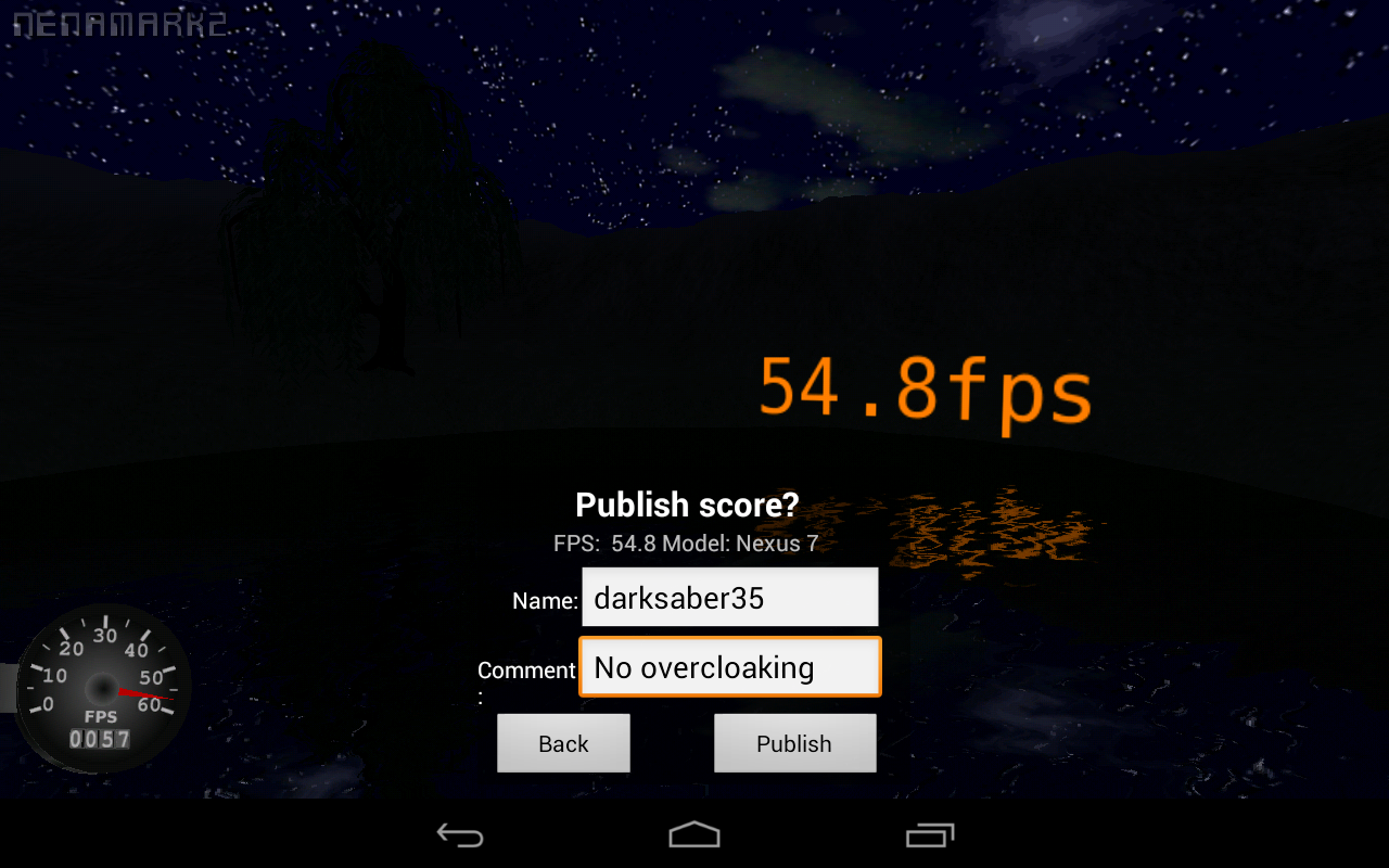 The nexus 7 averages between 54-55 FPS and a TAB2 running the same Benchmark scores a very lowly 20+FPS on average .