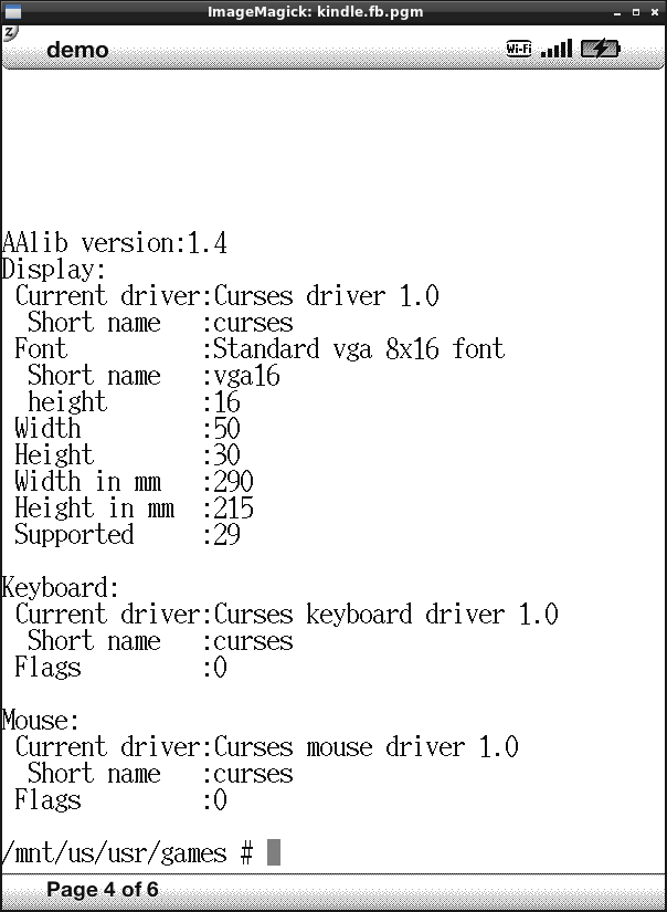 1.3 Gb of software. I now have aalib working ![]() aafire test works This is a big step forward. That's a custom inclusion in buildroot. custom Config.in with a new fully customized skeleton for the kindle - targetting the correct structure now. I also had a look how hard it might be to whip up a CATCH-ALL fixer-upper script to apply to existing and new Configure.in s automatically. Also to locally cascade the new optional dependencies satisfied by aalib, a few things support it IIRC. It's a toughie with handballed files in the mix to do this all on-auto but I'm thinking on it. This IS something I am good at (Thank my lucky stars had to happen eventually) On the kindle side I now can hack the right libs to start, more or less, at whim. without too much 'ld' gripes and no updating the core config. People may well already know all about LD_PRELOAD and LD_LIBRARY_PATH and friends. for my part this is helpful info. Since stuff now works. In a large way. from FAT. Without linking. who knew. ![]() (thanks you NiLuje for the pointers, and HIDI for a working example) prboom is just a step away... Lots of fun being had here. Happy to share. Last edited by twobob; 08-19-2012 at 10:16 PM. Reason: more fire |