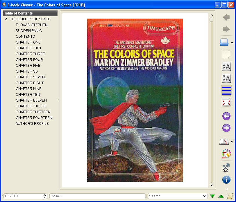 The epub has each story in a different file. The calibre viewer will always (unless I missed an option) start the text from the new file at the top of the window. So, depending on exactly how long one of these files is, the screen and font size used, if you scroll through the book with the page down key, there will be empty space on the last page of each story. In my current setup, the divider image appears at the top edge of the page for a couple of stores. You are probably getting just a bit of it on the last page. One thing to do is to scroll up from the top of a story. In this case, the view will fill the page. |