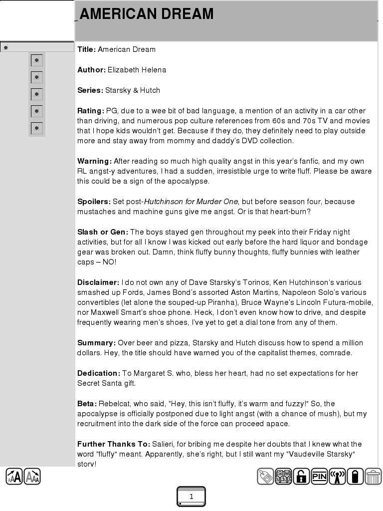 That was really helpful.How much slower is the page turn with FBReader? I think I'd get tired of it over time if it was over 3 sec. I think I'm going to buy an iLiad because I want a larger screen, and I'd be really surprised if Astak get the large Mentor out before next year. But given what you said, I think my best option is to create PDFs. I just now tried to create mobi files from some randomly chosen story files I have saved, and 2 out of 3 didn't really work. In many cases the basis is really bad, automatically generated code and/or with tables. I already spend quite some time on cleaning up the html files - it's quicker to copy into Word or Pages and create PDFs - but they didn't work so well on the CyBook... |