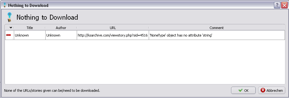 I just had to drop in (and finally register for this site rather than reading threads all the time as a guest) to express my thanks for this fantastic plug-in. I love it! Have downloaded a ton of stuff using it, primarily from Archive of Our Own and Fanfiction.net. Love being able to have so much of the metadata filled in automatically. I also like being able to select all the fanfic listed as In-Progress and have the plug-in check for updates. There are many things I love about it.