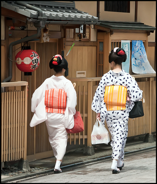 But today I took a Busdriver's Holiday and went shooting in Kyoto. The fishies in Micronesia were most cooperative and we were able to get what was requested by the client quickly, and with the water viz so damn clear we spent hours just watching life swim/craw by. So today I went to the "Gion District" of Kyoto to watch another slice of life walk by... the "Maiko-san!" These are the geisha-in-training, and the Gion District is where they all live and work. I spent most of the day snapping away as they walked to and from 'school.' (It only takes about a 20 year apprentice-ship for a Maiko to become a Geisha.) I managed to get several nice photos. I'll put some up after I cull out the mess-ups. The Maiko are VERY shy and usually hide behind their parasols when they see someone trying to take a picture. I figure I got about 3-4 good shots out of 400 images... By the way, for those of your snickering behind your palms, Geisha are NOT prostitutes. That's in another part of town. ![]() Geisha can earn $10,000-$20,000 for an evening's work. It would take one hell of a hooker to make that much! Now I'm going to treat myself to a glass of Bombay Sapphire. I haven't had any in about three-four weeks! Stitchawl Last edited by Stitchawl; 08-28-2012 at 07:56 AM. |