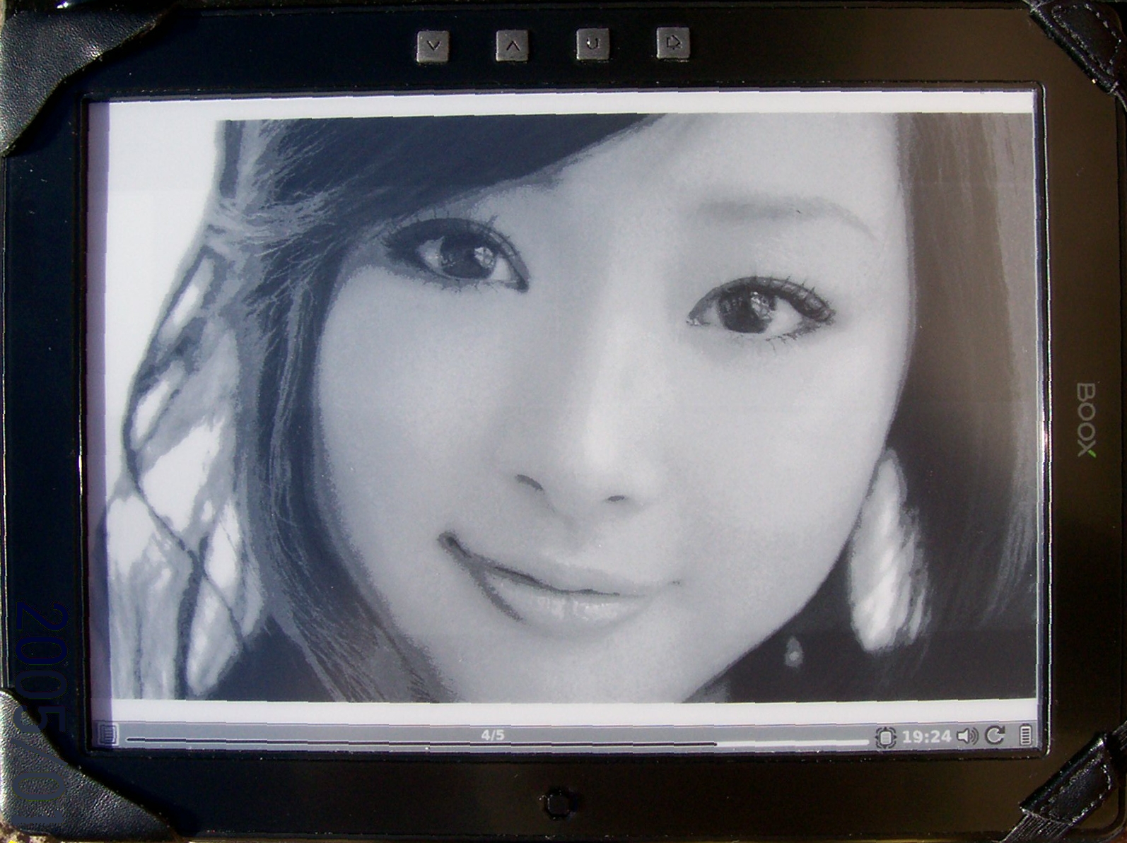 Viewing images a lot, I have noticed that the darkening steps of the 16 gray tones are not smoothly distributed between black and white. With other words, if you display all 16 shades of gray on a palette there is a smooth increase of darkness for the first 11 levels (from white to black), then there is a sudden disproportionately increased darkening between 11th and 12th. Again follows smooth darkening between 12,13,14th levels, and a second unwanted sudden increased darkening between 14 and 15 levels. The transition from 15 to 16 is smooth again. You can see what I mean if you take a look at the attached image gray_scales_on_M92.jpg. This is the photo taken of M92 displaying the image gray_scales.gif. Basically there are two disproportionately large jumps of darkening, while there are some adjacent light shades hardly distinguishable. Unfortunately this results in a strange photo viewing experience. If the photo is light it will produce a very nice picture where the shades from 1 to 11 are used. Then if there is a slightly darker area there will be a sudden jump of darkness sometimes creating a caricature-like distortion. This can be seen on the sample_on_M92.jpg photo where the full_color_sample.jpg is displayed on M92. The left corner and edge of the mouth is exaggeratedly darkened. The same effect is visible at the corner of the eye on the left and the edge of the face and hair. It creates an impression of badly developed black&white photo, or a distorted image. If you convert the original full_color_sample.jpg into 4bit gray-scale (16_level_gray_sample.gif), and display it on a PC screen these distortions will not be visible. It is not too bad on this photo, but it is quite disturbing on darker photos. This is definitely a bug in M92. Most probably a software bug that uses an uneven gray-scale level distribution. Did anybody else notice this phenomenon yet? If it really turns out to be a software bug, I would really appreciate if the developer community or Onyx could fix it because this would make the difference between fairly usable vs. perfect photo quality image display. I am sure there are many users like myself who use the M92 for viewing photos, graphs, and drawings, so it is not an unimportant feature. In my case in fact, the ability to display 16 gray levels and a large screen were important factors while deciding to buy this E reader. Cheers, Joe |