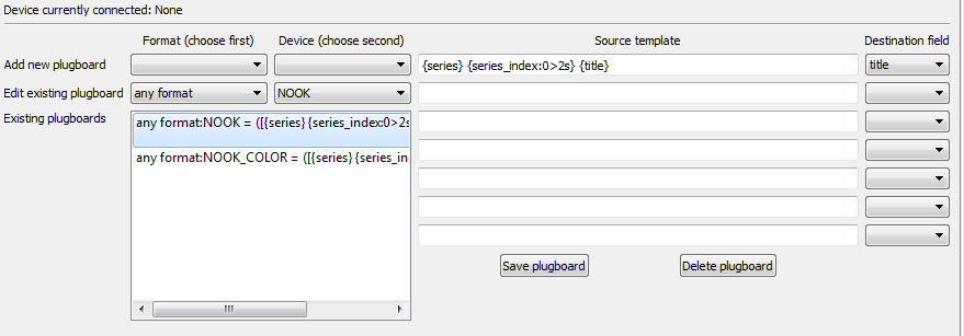 As for series, you can set up a metadata plugboard so that (rooted or not), the series title and number are inserted ahead of the book title in the title field when you send it to your device/SD card via Calibre. That way, when you title-sort, all books in a series are grouped together, and in order (i.e. Harry Potter 01 Harry Potter and the Philosopher's Stone). Just choose the file format and device it applies to, type in the command template, and tell it to send it to the title field, and once you save the plugboard, it'll do that for all books that are part of a series. |