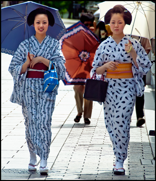 Keep in mind that these women are all 'students.' They will serve an apprenticeship that can last 20 years before they are given their first 'rank.' Yeah... even Geisha get 'Black Belts' (or the Geisha equivalent. 1st degree, 2nd degree... right on up. But they might be 50 years old before they reach 2nd or 3rd degree...) The girl who is smiling at the camera (left side in the last set of photos) isn't going to make it... Not enough humility. Compare her with the very first one. Stitchawl |