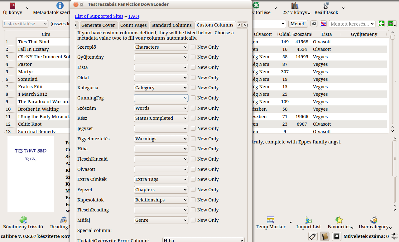 The only change to the config dialog in the beta version is to add 'Relationships' as an available metadata to populate custom columns with. Have you tried the usual candidates already? Restarting calibre, reinstalling the plugin, reinstalling the previous version of the plugin, rebooting the computer? What is your OS version? Can you provide some screen shots of the behavior? Do you have a large number of custom columns (>7) defined? Jim |