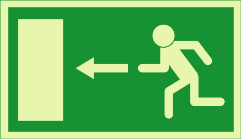 Actually, Nate, EU regulations say that exit signs should not have words. There is an image of a little green running man with an arrow. This means that European Citizens can find their way out of buildings without reading French, German, Polish, Welsh Spanish, Galego, Gallo, or Occitan etc.
