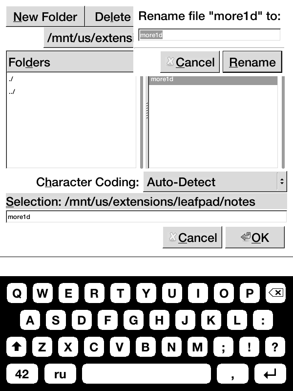 Sorry! I mean start leafpad and open one of the dialog windows, as on screenshots. Then ssh to your kindle and paste given command into terminal. Copy the output of the command and paste to your post on the forum.