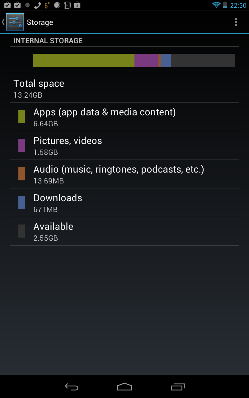 Huh. If the Nexus 7 forbids moving apps (50/50 odds for non-factory installed apps, even if it did) to the internal data partition, that's even more reason to avoid it. Means it only has, what?, 1GB for app installation on the 8GB model? (and like 5.5GB for data)