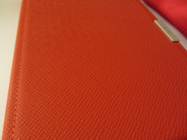 My persimmon cover arrived today. I only ordered it because I wanted it in red, and some users said that it is more red than orange. Amazon actually had a red one in their pictures in the beginning, but then removed it, because they did not sell it - out of sight, out of mind. It is a light brick color. Thinking of returning it for a pink or black. I placed the built red sleeve next to it so you can tell the difference.