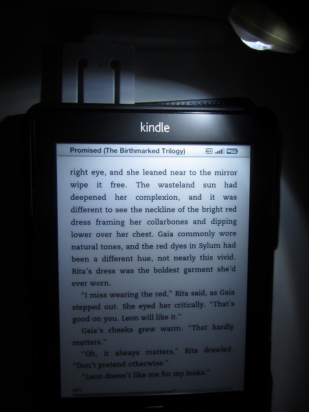 M-Edge is actually giving away the E-luminator book light for free with every e-reader cover purchase I bought one before for my PRS-300 but never liked it very much - it didn't seem bright enough for the PRS-300. Surprisingly though, it was a good match with my Kindle Touch. It gave my KT background an almost white cast, compared to my Travelflex, which gave my KT screen a purplish hue. (I loved the Travelflex with my Sony PRS-300 though).
