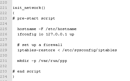 Note from another image (the network pre-start script): /var/run/ppp is where the pid of the 3G ppp0 process will be kept.