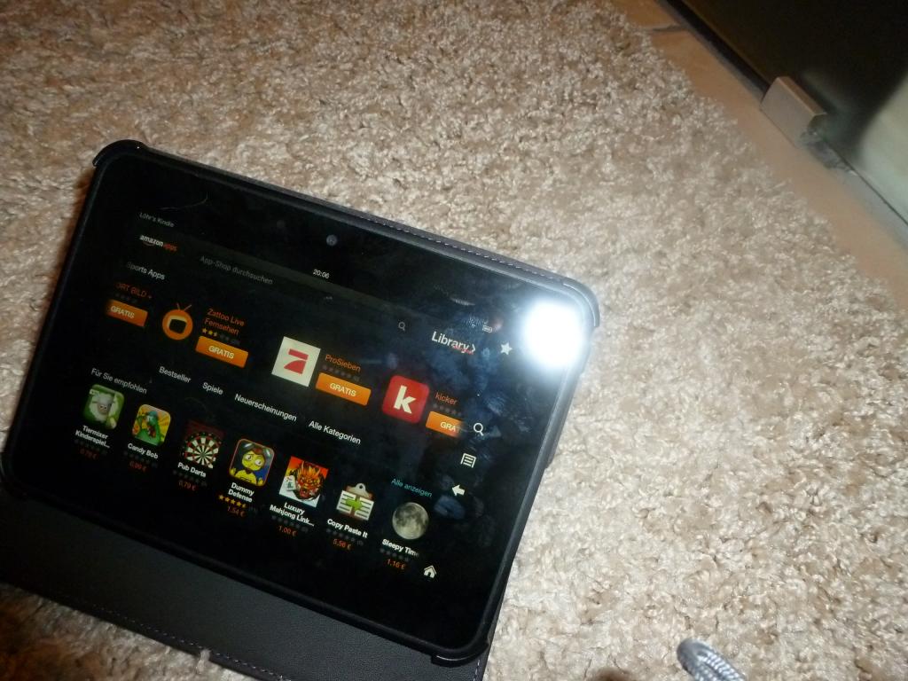 Da muß ich doch gleich mal fragen: Hast Du Zugriff auf den deutschen Amazon Appstore? Ich habe das große Modell über Umwege in USA bestellt, bin aber unsicher, ob ich es vielleicht doch stornieren sollte Ich weiß, daß man mit dem Fire HD apps sideloaden kann, würde die Angebote aus dem Appstore aber gerne noch mitnehmen, gelegentlich sollen die ja brauchbar sein Ich möchte vermeiden (vor allem, wenn der 8.9"er dann doch nur zwei Wochen später nach Europa kommen sollte ), daß das Gerät im US-App-Store zwangsfesthängt, den ich wegen deutscher Kreditkarte nicht nutzen kann.Wegen der Werbung mache ich mir keine Sorgen, wenn die nach zwei Wochen noch nervt, kann man sie ja abbestellen |