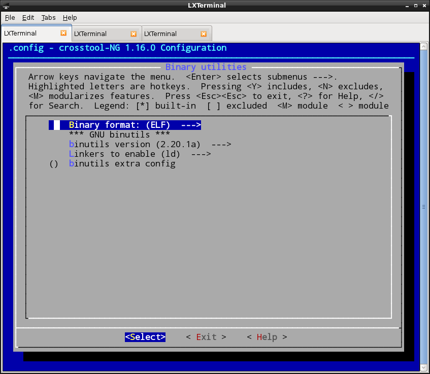 So. I fired up make ctng-menuconfig.