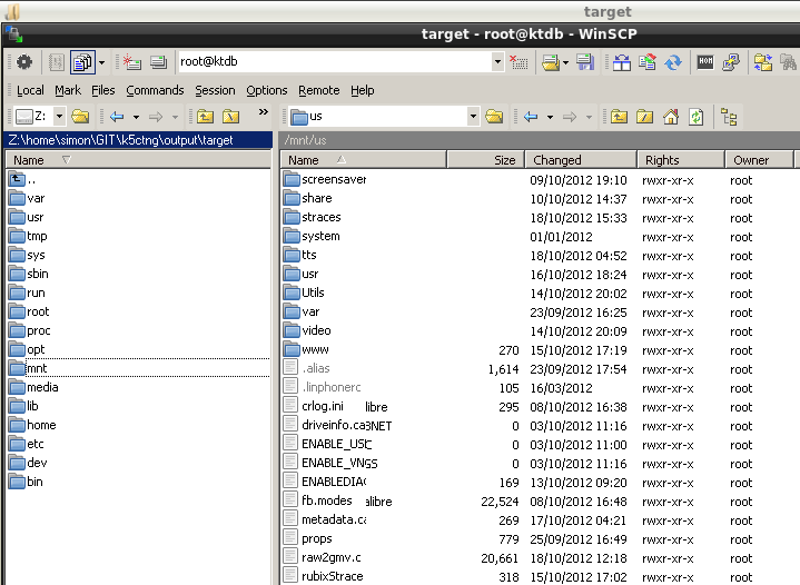 Which I have outlined before but: since a picture and a few files can speak a thousand words. create folder under packages (pictured - with relevant name) create two files (provided examples) - edit them to use the "relevant name" - Just make one up. BIG NOTE!!! YOU MUST REMOVE THE --prefix and --exec-prefix !!! you don't have a custom skeleton !! the target directories will be missing!! just run it without the --prefix etc.. until you build a custom skeleton (I can provide one) You also need to go find the DL URL and copy the style I have provided. The layout of the Config.in is VERY PICKY, keep the spacing exactly I have shown it. (four spaces indent is it? something like that) When you are happy with your two new files: add an entry - in the "relevant section" in the main packages Config.in (example provided with custom entries, search is your friend) (The placement in the file determines which menu it appears in) re-run make xconfig. wow! they are there! let's build them!!! ah shoot it broke! check the error output. it probably requires a lib BR doesn't have or you forgot to add support for in the make. Just add the relevant requires - or selects - in the PACKAGE Config.in and maybe check the ./configure --help in the PACKAGES BUILD DIRECTORY! Another trick: say we have BR in ~/GIT/BRK3 always add it -C to your commands like: make -C ~/GIT/BRK3 xconfig (Then you can run the commands from ANYWHERE, not just the root.) helpful! Err... I think that covers it. EDIT: Ah yes. also try BR inline autocompletion for packages with the -C blah in place. BR can delete the ".stamp_somethingLikeBuiltOrWhatever" flag files to help with letting BR know you want to rebuild something. Once it is "built" you have to tell it to rebuild like make -C ~/GIT/BRK3 someapp-clean-for-rebuild (or whatever) or you can go delete the flags yourself (I just do that TBH) it's pretty obvious what they do - want to DL it again? delete .stamp_downloaded - etc... (EDIT: Added a picture of the stamps - NOTE THE DIRECTORY) RE MAKEFILE's: The BR Readme covers the 3 main types of make files (It accepts). Just get used to spotting the GNU Autotools ones and try adding them first - they work 95% of the time on the Kindle 5, - your milage will be less as the older TC may let you down from time to time. Well, I'll attach the pics. I also pictured WinSCP ready to transfer built files. HTH Last edited by twobob; 10-18-2012 at 10:18 PM. Reason: extra points, more tips, more pics |