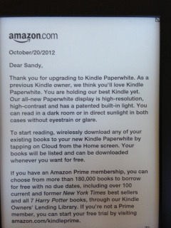 ![]() My issue is more with the green hue in the top center/right. When I am reading, it reminds me of the after image effect you get from looking at a bright light, and then looking at a white page. In fact at first, that's what I thought it was. I even turned my Kindle upside down, to see if I still noticed the green area or if maybe it was an effect of how and where I was looking on the page. Turning the Kindle upside down the blob was still noticeable, just at the bottom of the screen. ![]() I chatted with Kindle support, and offered to email them the pictures of my screen. The representative said that would be helpful. After receiving my pictures (and going through the standard factory reset, verifying that I hadn't dropped it or gotten it wet) they said rather then me exchanging it at Best Buy they would send out a new one. I have 30 days to return the defective one, or they will charge my credit card for the second unit. I was happy that I didn't have to send mine back first. My new one should be here by the 23rd, so I am keeping my fingers crossed. |