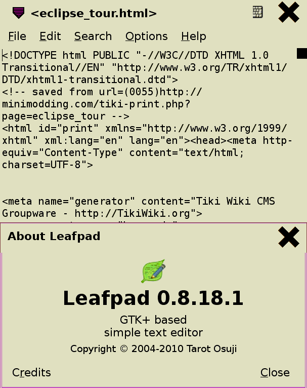 Size issues in xfte aside it's actually really fast, leafpad is "as it is" in the other incarnation natively on the touch. |