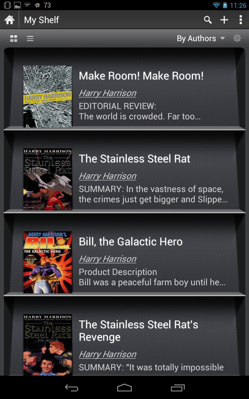 I'm moderately familiar with Calibre (currently using XP and kindle) but wondered whether I can use it to generate a "book shelf" with front covers of books I'm reading and hopefully a little info on each book. On my kindle I certainly couldn't do this but the tablet is a little more flexible. Is it possible? Which reader do you recommend?