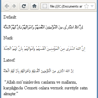 Is there a way yet to change the font so that we can have more Arabic fonts on PW not only the default one as seen in your above Qur'an example? thanks |