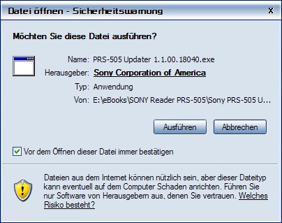 Folgendes bitte beachten:In diesem Beitrag geht es um die Manipulation und die Erweiterung des SONY PRS-505-Funktionsumfanges, - das sogenannte "Customizing". Um welche Vorteile und "Features" es sich dabei im Einzelnen handelt, wird im weiteren Verlauf dieses Artikels beschrieben. Zu diesem Customizing, also der Abänderung der Betriebssystem-Software im Gerät, wird ein spezielles Programm namens "PRSCustomizer" verwendet. Dieses Programm funktioniert in einer für deutsche Nutzer sinnvollen Weise nur mit einem SONY PRS-505, der die Firmware-Version V.1.1.00.18040 trägt! Es besteht zwar die Möglichkeit PRS-505-Reader, die mit anderen Firmware-Versionen ausgestattet sind, auf die V. 1.1.00.18040 "upzudaten", - aber naturgemäß birgt eine solche Prozedur immer gewisse Risiken, - zumindest aber einen Garantie-Verlust, sollte das Gerät dabei beschädigt werden. Zudem besteht gegenwärtig aufgrund der noch nicht frei verfügbaren deutschen Sony-Firmware nach einem fehlgeschlagenen Firmware-Update eines in Deutschland verkauften Gerätes (Firmware-Version V. 1.4.00.23260) keine Möglichkeit zur Do-it-yourself-Wiederherstellung in den Original-Zustand. Die dringende Empfehlung lautet daher, es sich gut zu überlegen und sich seiner Sache sicher zu sein, was man denn tut. Für alle, die denken: "No Risk - No Fun": In Ruhe weiterlesen! ABER BITTE ALLES!!! ![]() ---------------------------------------------------------------------------------------------------- Wichtig! Bitte lesen Sie zunächst den nachfolgenden Leitartikel einmal KOMPLETT durch, um zu verstehen, welche Maßnahmen erforderlich werden, um die Änderung der Betriebssystem-Firmware und die Verwendung des PRSCustomizer-Programmes zu ermöglichen. Vollziehen Sie die einzelnen Schritte in aller Ruhe nach und tun Sie nichts, wenn Verständnisprobleme bestehen. Der sichere Umgang mit Windows, dem Datei-Explorer und dem Entpacken von Dateien wird vorausgesetzt. Sollten Sie dahingehend unerfahren sein, bitten Sie jemanden um Hilfe. Achtung: Es besteht eine gute Möglichkeit durch alle manipulativen Veränderungen, also sämtliche Firmware-Update- oder Customizing-Versuche, den PRS-505 zu einem derartig schweren Absturz zu bringen, daß er danach nicht mehr reaktiviert werden kann!!! In den englischsprachigen Foren gibt es einige Fall-Beispiele dafür, in denen nichts mehr geholfen hat, und nur noch eine regelrechte Reparatur (also das Einschicken des Gerätes zu Sony) übrig bleibt. Daß dieser Weg wirtschaftlich unrentabel ist, braucht wohl nicht extra betont werden, insbesondere, da durch solche Eingriffe ein Garantie- oder Gewährleistungsanspruch ohnehin nicht greift. Seien Sie also bitte hochgradig vorsichtig und fabrizieren Sie keinen Schrott! FIRMWARE-UPDATE: Prüfen Sie zunächst bitte, welche Firmware-Version sich auf Ihrem Gerät befindet. Dies können Sie unter "Settings -> About" feststellen. Die aktuelle Version für aus den U.S.A. importierte PRS-505 ist V. 1.1.01.25200. Etwas ältere Geräte haben die Version V.1.1.00.18040 oder eine noch frühere Version. Die für den Export nach Europa vorgesehenen Geräte weisen die Firmware-Version V.1.2.00.18050 (UK), sowie die Version V.1.3.00.22070 (French), und seit dem 11.03.2009 auch die deutsche Firmware-Verson V. 1.4.00.23260 auf. Möchten Sie als deutschsprachiger Nutzer in den sinnvollen Genuß der zusätzlichen Features des PRSCustomizers kommen, dann ist es vonnöten, daß Sie die Firmware ihres Gerätes auf die US-Version V.1.1.00.18040 abändern. Andere Firmware-Versionen werden von dem PRSCustomizer-Programm in nicht ausreichendem Maß unterstützt. Ein Update auf die V.1.1.00.18040 bietet gegenüber früheren Vor-Versionen der US-Firmware zunächst folgende sinnvolle Verbesserungen der Geräte-Betriebssystem-Software: