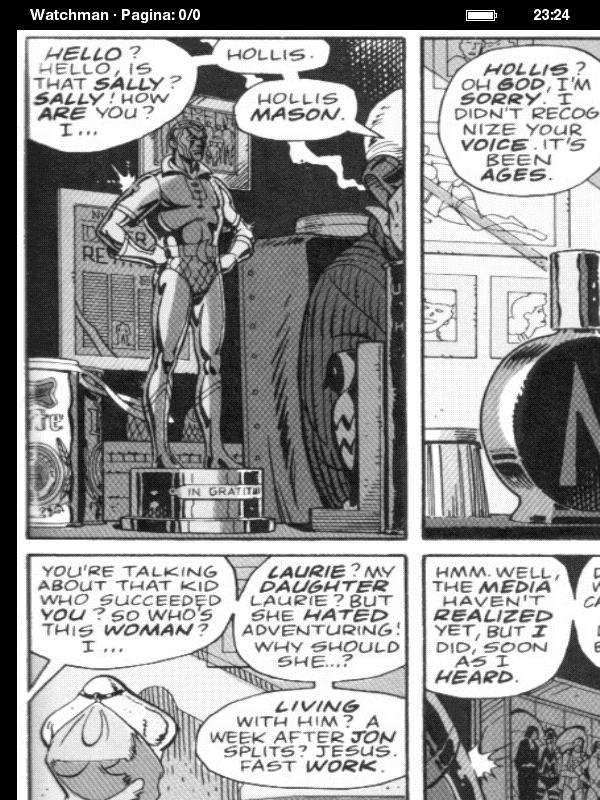 This makes sense to me...just like many more features in Kindle Touch! In the meanwhile, I added the last thing to Komic. It's something I wanted to add from the very first release. ![]() It's the image post-processing menu. I added only the contrast and brightness regulation and I'm not too inclined to add other features as I think that's all we need here. I'm still working on this, but it shouldn't take long (I need to apply the regulation to all pages and, finally, I have to port it to landscape mode). I tested it with a color comic (Watchmen) and here you can see the before and after: |