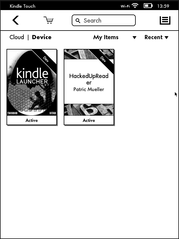 Varnie's launcher extension and the new Kindlet launcher are only in the zip file which contains the standard Kindle update package. http://bhaak.net/kindle/hackedupreader_0.4.0.zip http://bhaak.net/kindle/hackedupreader-0.4.0.tar.gz Last edited by bhaak; 04-17-2014 at 03:58 PM. Reason: domain name link update |