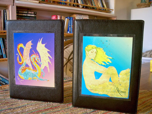 My wife Jo is a digital artist and we decided to individualize each of our Kindles. We printed a copy of some of her original digital paintings in a reduced size, had them laminated, and applied them to the fronts of our Kindles with spray-on contact adhesive (3M Super 77 tm Contact Adhesive applied only to the back of the laminated picture. Now we can't confuse the two Kindles. They also have Velcrotm applied to the back of the devices to keep them secure in the cases.