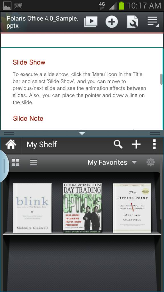 So T-Mobile just released an update this had the famous multi window view. This feature, for those not familiar with it, allows a user to have two apps in view simultaneously. Here I'm showing Moon and Polaris to show this feature is not limited to only Samsung apps. The bad part is that the app had to support this feature do not all apps work