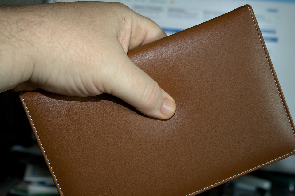 And state that the leather softcover case is NO protection against broken screens. After the disaster I experienced early on with my first Cybook Gen3, I found a nice case and used it. Later, when I bought my EB-100, I bought two Cybook leather softcover cases - and I used them on my Cybook Gen3 and my EB-100 RELIGIOUSLY! I relegated my Cybook to my mother who only reads for an hour or so in the evening and doesn't carry the Cybook around. The EB-100 became my *main* reading device. I carried it - in it's softcover case - everywhere I went. And I used my EB-100 for 8-10 hours per day. When carrying it, I would hold it like a book, spine of the case nestled in the valley between my fingers and thumb, thumb and fingers grasping the center of the case - just like I'd carry a similar-sized book.