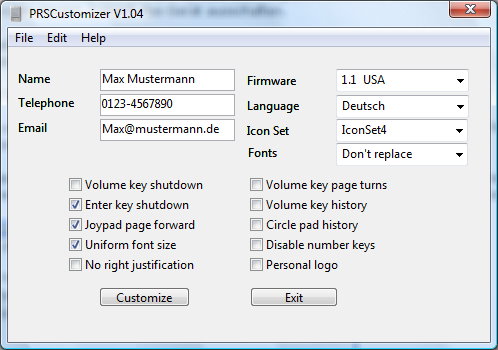 Diese "Features" können zusammengefaßt mittels eines Programmes namens "PRSCustomizer" (aktuelle Version: V.1.04) in den Reader eingespielt werden.
