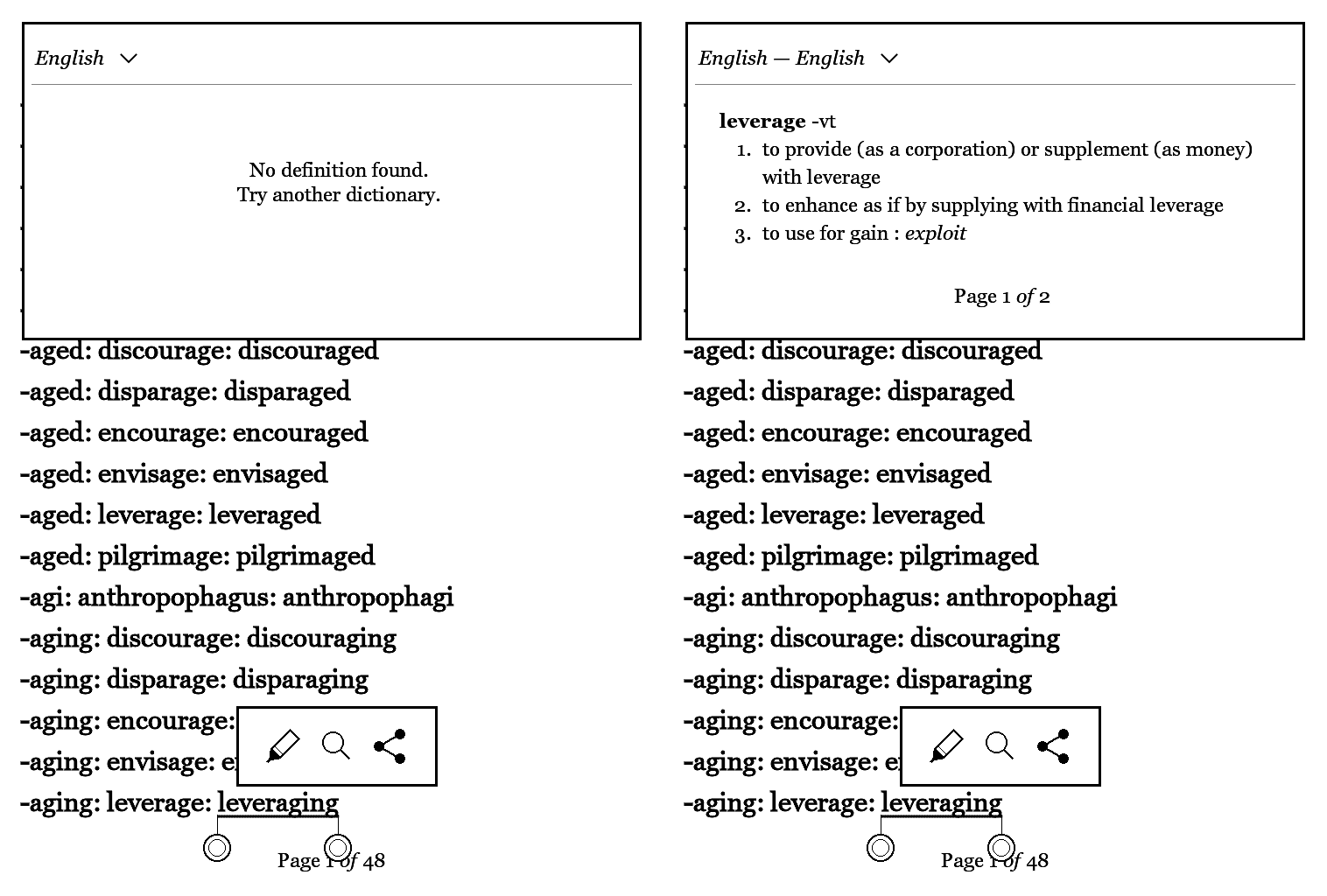 Sounds quite annoying. I am less than impressed that the french and japanese dictionaries are less than fully functional...especially with kobo's connection to both canada and japan