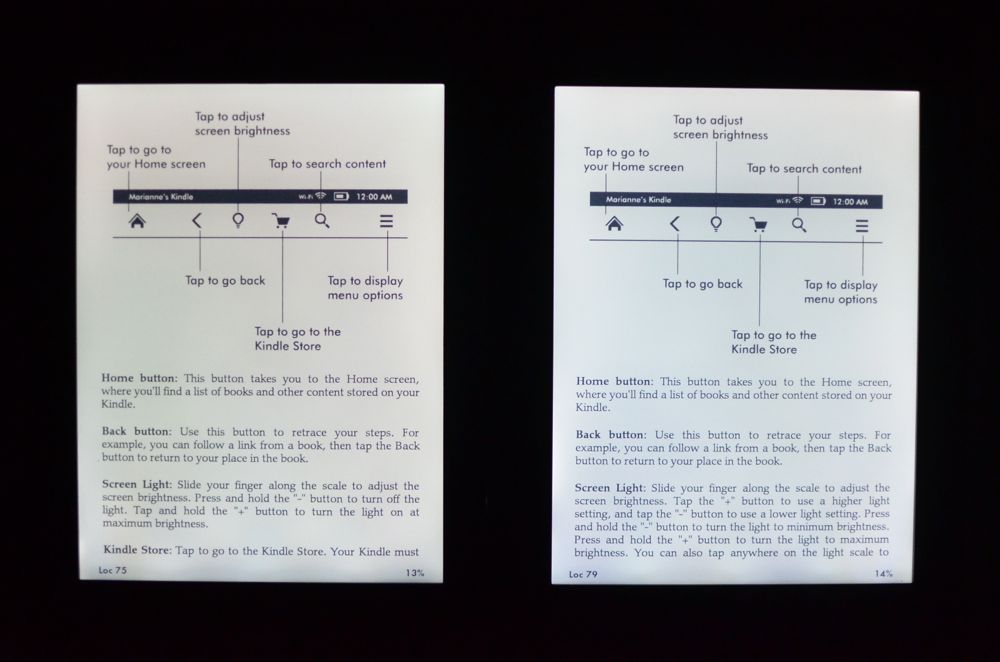 As for the glowing speck, I had one on an earlier PW that drove me nuts. That one went back. It was right in the line of text so I always saw it when reading. These two are very small (the pic makes them look bigger) and they never fall in line with the text so I never see them. I really only see them on the home screen when the book in the far right corner has a dark cover. I would notice them sometimes when I turned a page, but I haven't lately. Should the PW that arrives tomorrow be worse somehow, I'd be ok keeping my current one. Overall the screen is really nice on it.