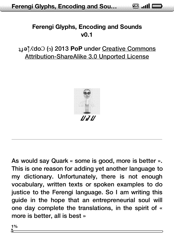 2013-02-24 v0.5 Changed license from MIT to CC, Used PlqaD glyphs & translated one word in Klingon