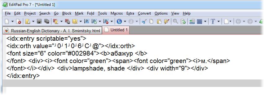 Following the logic of my previous post, фунтов which is in UNICODE \u0444\u0443\u043D\u0442\u043E\u0432 must have a <idx: orth value="04440443043D0442043E0432₁₆"> tag matching entry, and pointing at the book position where фунт is defined.