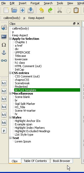 there was something really strange going on. Before I deleted BETA-Sigil.ini and sigil.ini, I had the ability to have a Tabbed Book Browser + Clips After deleting NO tabs, just above and below It is tricky (on XP) ![]() To get Tabs: the window must be in a separate Horizontal docked position, not below. Drag that window OVER, Not above or below the one to be Tabbed With Repeat to have all 3 |