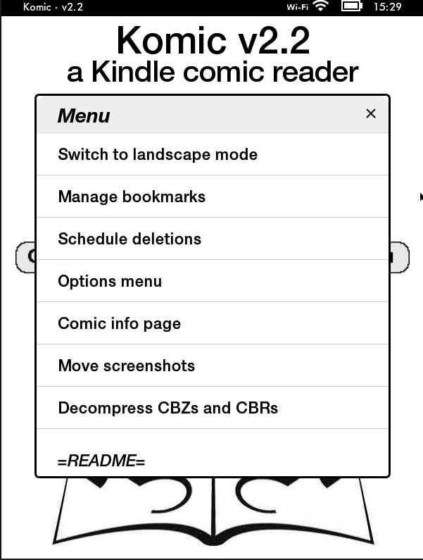 After installing Komic, I launched it from GUI launcher. Messages like 'Gathering Information... / Cover view disabled...' are displayed below the screen, and after that, the kindle only displays 'Unable to Start Application : The selected application could not be started. Please try again' message. What should I do? |