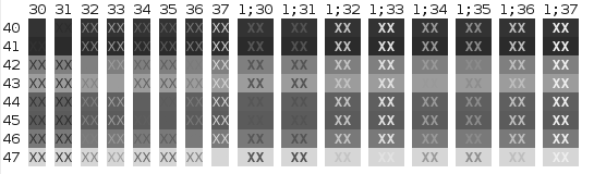 terminal.c: * for foreground color, the next 3 bits are background color.