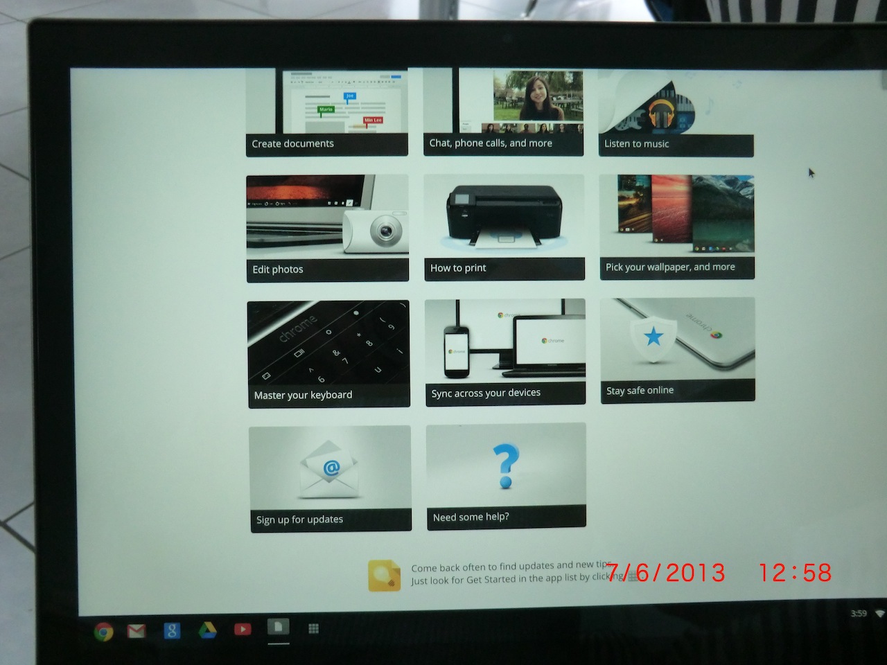 It was sent on Monday from San Francisco. Did get it on Friday. Pictures attached. The seller got it as a gift on Google's developer congress. You see it on the package: "For Development Purposes Only!". No problem for me, I knew that before. And so far, all units I've seen in eBay and the likes had been the same. I didn't find a way to buy directly from Google either. The box hadn't been sealed. The seller told me, that's the way Google has handed them out. But the Chromebook itself still is in its original shrink-wrap. Again: As expected and fine by me. I wouldn't have wanted it without shrinkwrap, though... Impressions: As I had hoped for: Not too bulky and extremely "valuable". I'd say, it's in the same class as Microsoft Surface Pro. No surprises, when booting for the very first time: Connecting to the web is the very first action and is core. It's downloading an update now. 8 minutes left... The display, as advertised, is great. I only see the download window and parts of the desktop background. But of course it blows my MacBook Air with it's meager 1366 x 768 out of the water. Design-wise I'd say it's great, but no "revolution" compared to my MacBook Air. No fan noise so far, but I'm only downloading the update now of course. Not that easy: I have MAC address filtering on my router. I know: Many consider it a stupid and easy crackable kind of protection. Anyway... How do I find the MAC address of my Chromebook Pixel? Hmmm... I found it: In the lower right corner, similar to Windows desktop, there's the symbol for WiFi. Here one finds "i" for info. Mac address and further details can be checked from there. Just briefly checked "Plants vs. Zombies". Wow! The speakers are really powerful. From the sporadic sound effects and the simple background music I can't really tell about the quality. But nothing to lament so far. Touch screen is working fine in "Plants vs. Zombies". I've read different reviews. Some claiming "single touch only", others praising the multi touch. I expect the latter, but I'll check. Edit: After having set the respective flag, I can pinch and zoom in the browser. So it can't be single touch. Whether it's 5 or 10 touches... The fan is relatively loud now. I'm only browsing the web, but I clearly can hear it. Surface Pro is quieter, MacBook Air as well. I'll track that. Checked the highly recommended flags (some kind of special settings). Important: Activate "pinch & zoom", else it's not present in the browser. Strange for a touch-enabled device. Working fine now, after setting the flag. My verdict for now: Great! Exactly as expected/hoped for. It definitely will be my main unit for surfing the web. Yes, it's not much different from using Chrome on Surface Pro, for example. Chromebook Pixel starts in less than 10 seconds, but Surface Pro is almost as fast. Maybe, when I have to travel light, I'll choose Surface Pro as my multi-purpose unit. But when I freely can choose at home, on the couch, Chromebook Pixel looks and feels great. I have a touch screen, but I have a full blown keyboard as well. And (one of) the best display around. Only potential issue I have to track: Fan noise. Maybe it's just because of the bad circulation now. I've put it directly on the couch. I'll check the fan noise, when putting it on a flat surface. Just redeemed my free 1TB Google Drive. Didn't work at first: "Your device is not eligible...". For whatever reason, suddenly it did work. Not essential for me, but for free of course I gladly take 1TB... Wow!!! The introduction offers "take your display for a test drive". It's the demo "Timescapes". Slow/motion and time-lapse cinematography. What a test drive this is! Speakers hidden below the keyboard, but surpsisingly powerful and clear! And the colors - just great. Absolutely nothing to complain. The fan more or less is constantly on. Not loud, but without any additional sounds you hear it. Even without load. Not annoying, but strange though. MacBook Air or Surface Pro sometimes get louder than what I hear now on Chromebook Pixel. But they can be entirely quiet as well, whereas Chromebook Pixel seems to have the fan constantly on. EDIT: The fan is not constantly on. Chromebook Pixel sits next to me, while typing this on my MacBook Air. No load = no fan noise. The fan starts rather quickly, but not without any load at all. What's pretty obvious: Google -what a surprise- seems smarter/more experienced re. advertising/marketing. When using Surface Pro for the first time, you struggle a bit (where/how can I search for apps in the store?). You go through the help sites and eventually you find it all. And then Surface Pro respectively Windows 8 are a pleasant surprise. Google, for starters, has prepared kind of a "beginner's portal" (last 2 pictures). Here you find impressive demos and tips. No biggy, after 1 or 2 hours of testing it won't matter anymore. But it's a different approach and makes for quite a difference in the first 20 minutes or so. Again: Imagine the branding of Apple, the marketing of Google and the software capabilities of Microsoft, bundled in a single product... Interesting: As so often, I did a hard reset after some time. I didn't find a way to get rid of the 2nd user account I had activated. I didn't have to repeat the update after the hard reset. Most units you really reset to the stone ages. Here obviously the update is flashed and conserved. Nice! There doesn't seem to be any auto-brightness, just 16 manual steps. The display is phantastic inside the house. Outside, in direct sunlight the usual of course - but I've seen worse. I have no idea, how (or whether at all?) I could use my surfstick. But my MiFi is working fine of course. EDIT: Only a snapshot of course after just 1 day of usage. But so far, battery duration seems to be ca. 4 hours under full load. Full charge takes ca. 3 hours. Just briefly testet an MP4 file: Tintin. The display is great of course. But the real surprise are the speakers: Very crisp and extremely